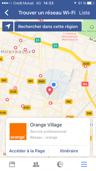 En cliquant sur Accéder à la Page, vous pouvez visitez la page Facebook des entreprises proposant un réseau WiFi gratuit, et en appuyant sur Itinéraire, voir le chemin à emprunter pour s’y rendre. Facile non ?