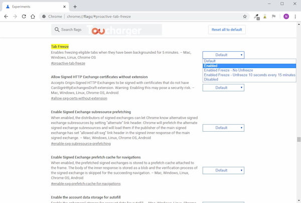 Le tab freezing n’est pas activé par défaut dans Chrome 79. Il s’agit pour l’heure d’une fonctionnalité expérimentale qu’il convient d’enclencher manuellement. Pour ce faire, il faut se rendre dans le panneau de configuration expérimental de Google Chrome. Ce menu caché est accessible via l’adresse suivante : chrome://flags/#proactive-tab-freeze.