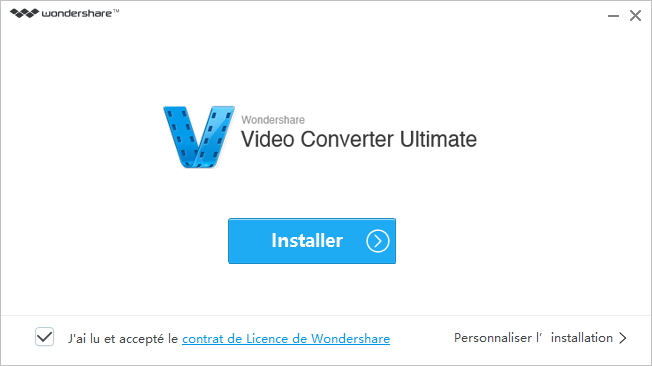 L’installation de Wondershare Video Converter Ultimate se fait très facilement car les différentes fenêtres sont sobres et ne présentent que peu d’options. Commencez par cliquez sur « installer ».