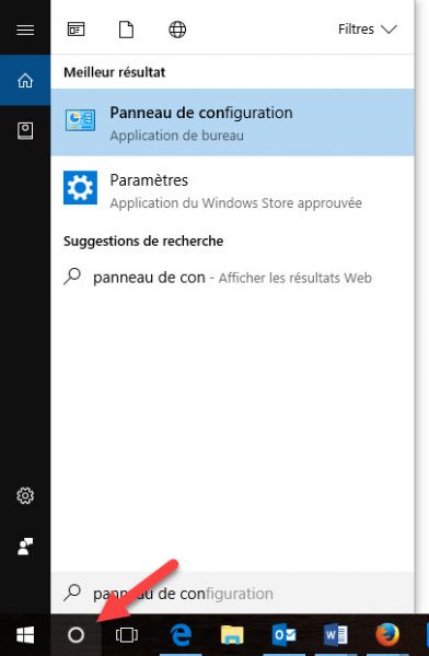 Commencez par faire une recherche sur votre ordinateur en utilisant Cortana, représenté par un cercle dans la barre des tâches. Cliquez dessus et cherchez « panneau de configuration ». Cliquez sur le résultat.