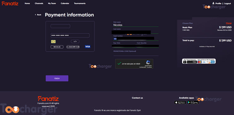 N'oubliez pas de vous désabonner de Fanatiz après le match. Pour cela, rendez-vous dans "Profile" en haut à droite, puis cliquez sur "Cancel Subscription".