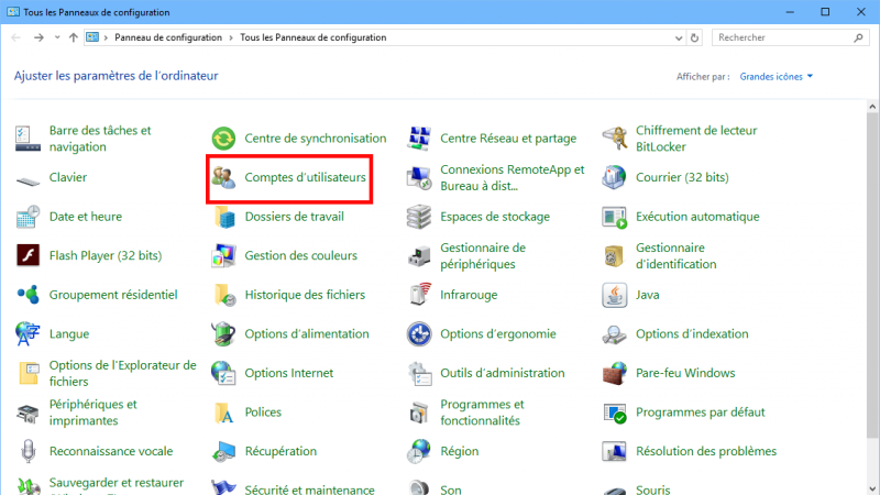 2. Rendez-vous ensuite dans la rubrique compte d’utilisateurs.